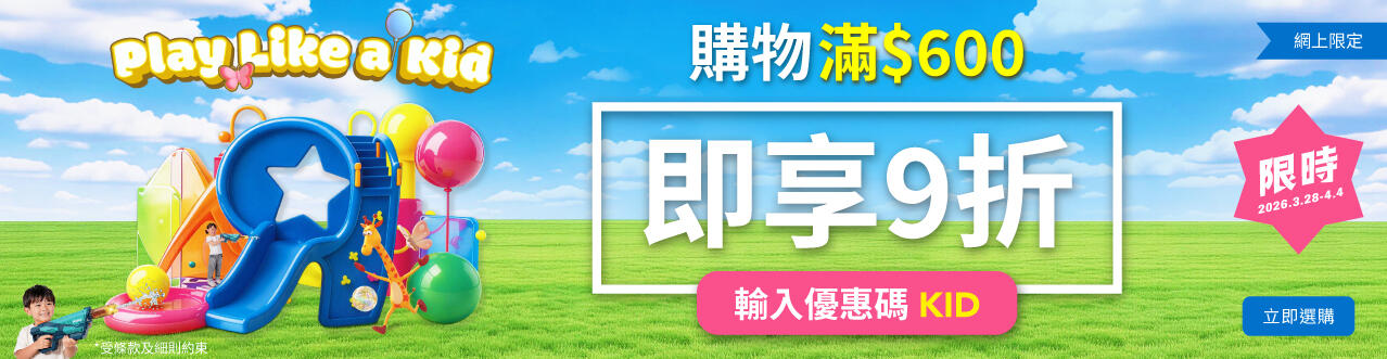 兒童節優惠 - 於付款前輸入優惠碼 “KID”,購物滿$600即享9折。了解更多
