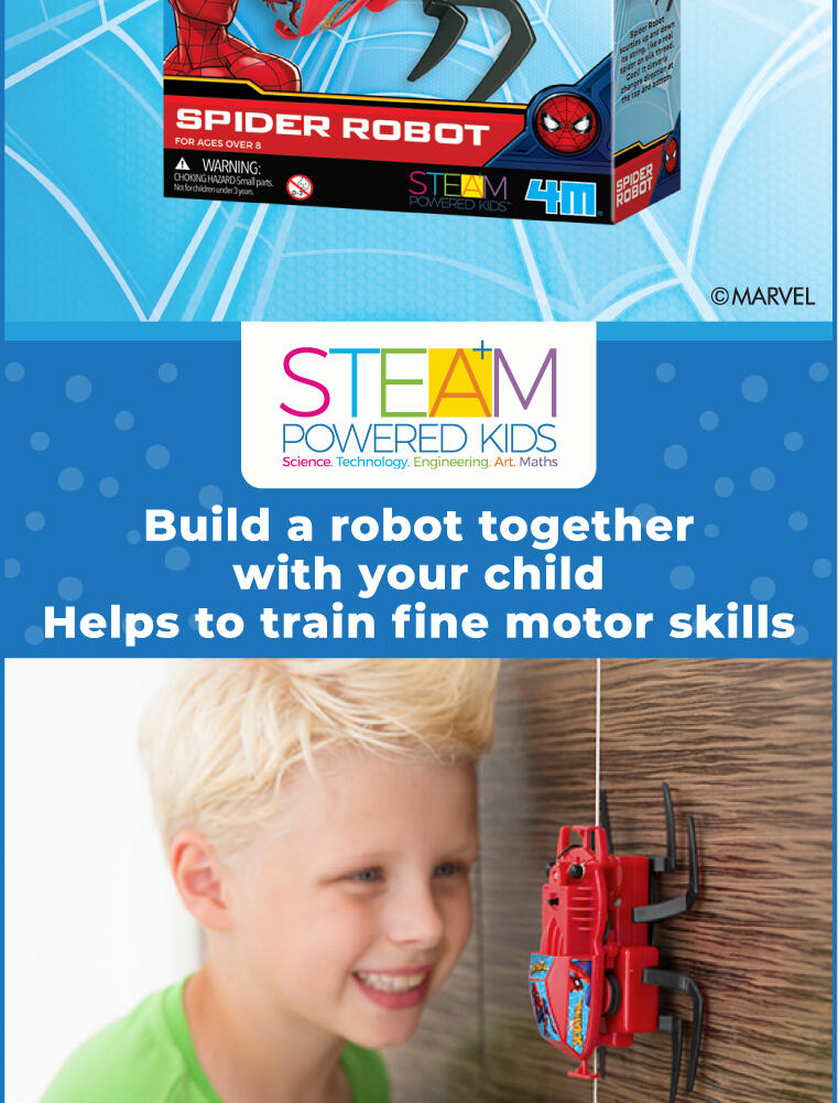 Spider Robot scuttles up and down its string, like a real spider on silk thread. Cool! It cleverly changes direction at the top and bottom.