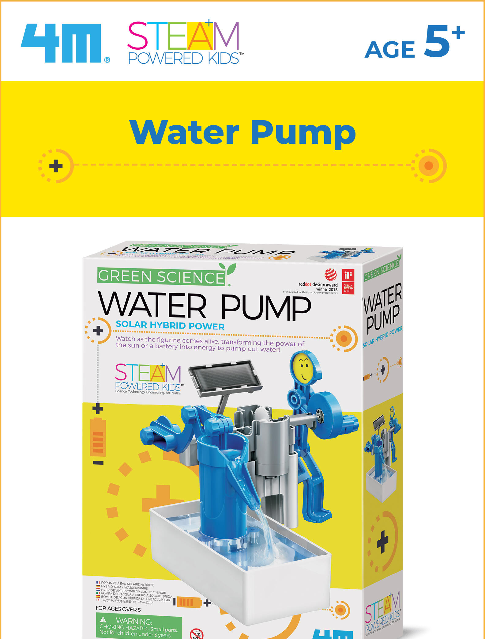 This water pump pump water along on solar power when the sun is shining. It can also be powered by battery