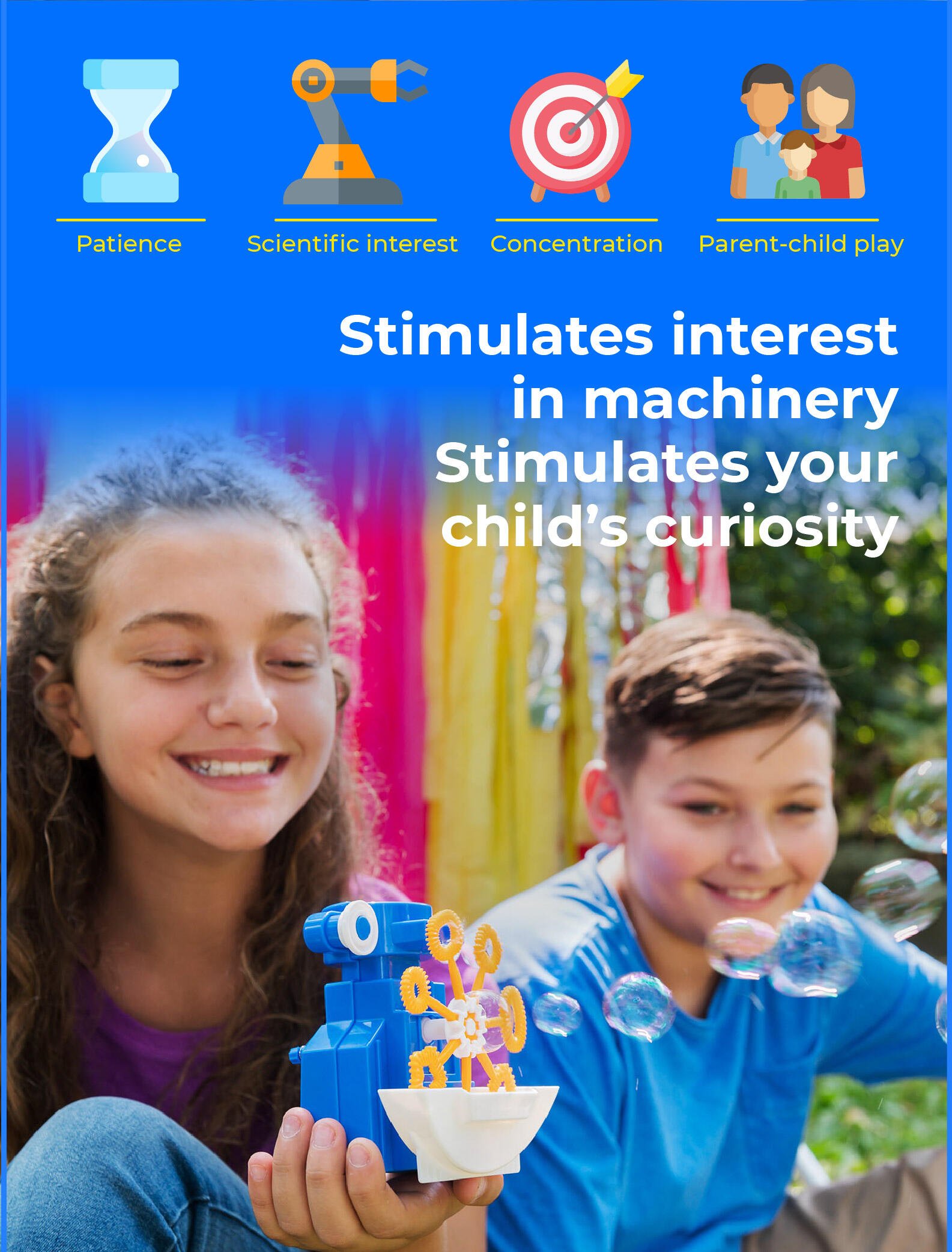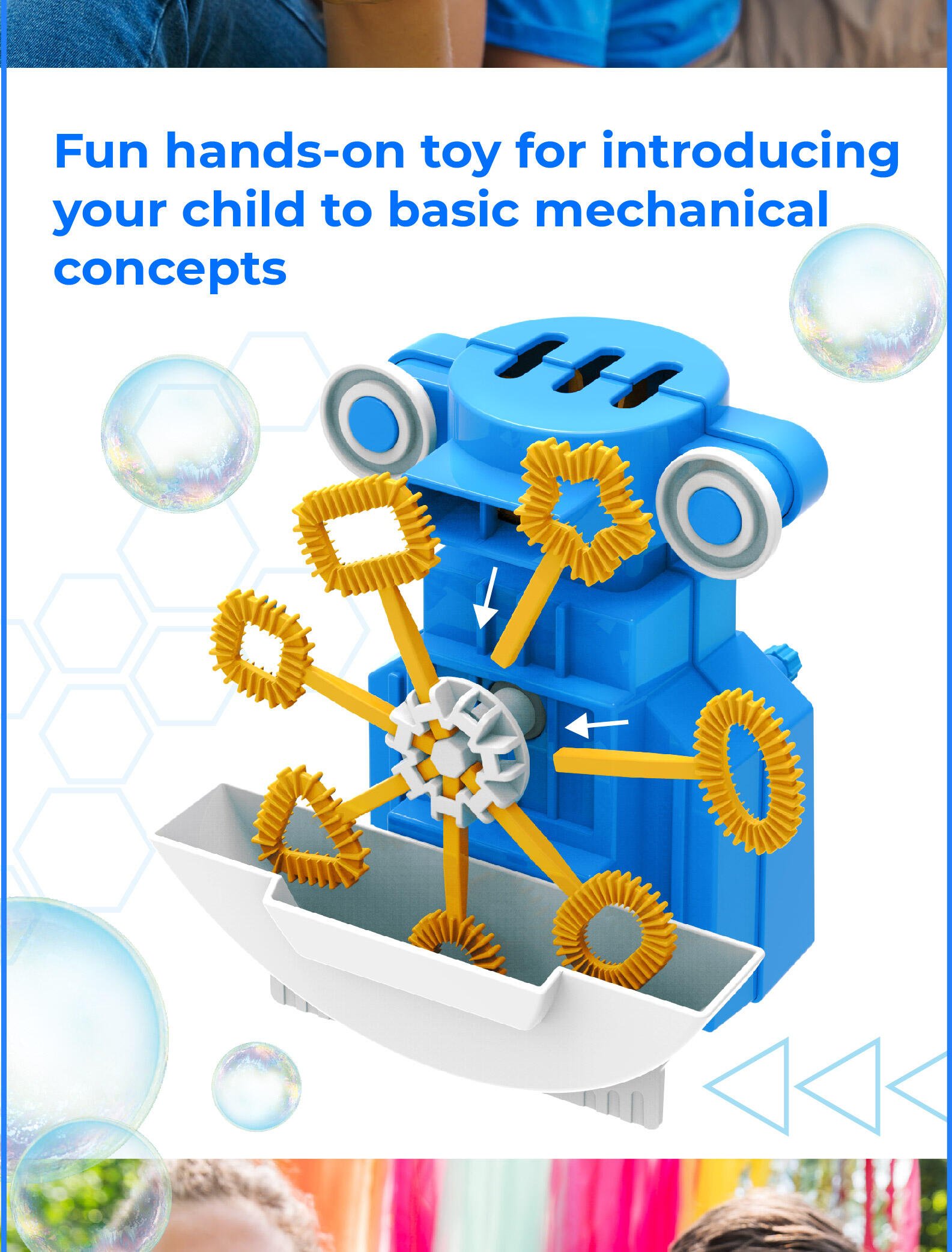 Construct this incredible bubble-blowing robot! Power it up and watch the bubble flow.
