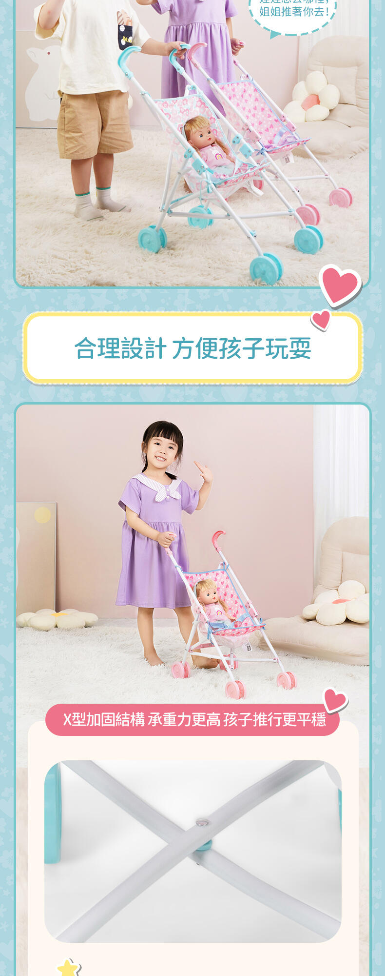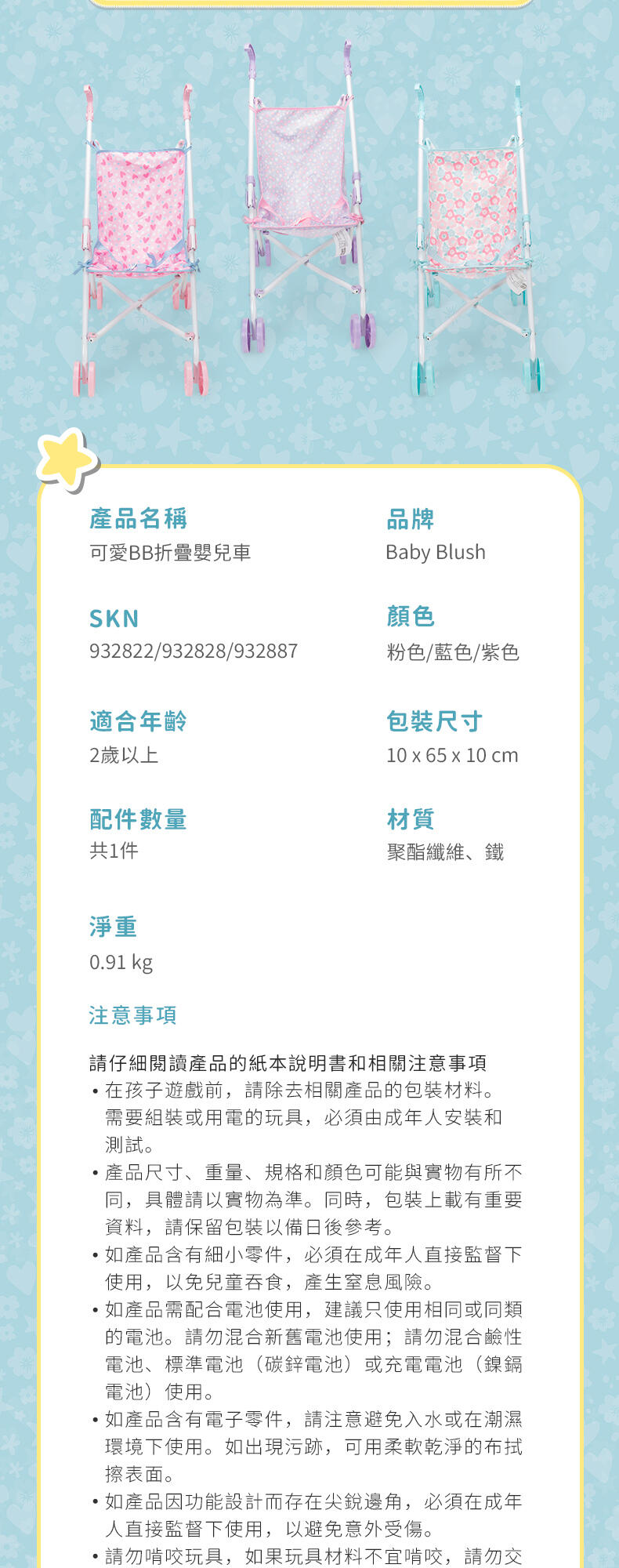 What will we do today? Should we play in the park? Go to the beach and enjoy the sunshine? Or perhaps we can enjoy a walk outside? Now your best friend can come with you, wherever you go, in her very own stroller. The compact, foldable design is perfect for portable play and comfortably fits baby dolls that are 13" - 16”.