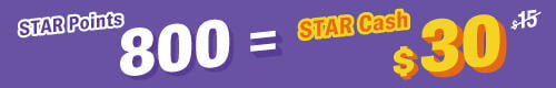 DOUBLE STAR CASH - Star Card members can redeem 800 Star Points for $30 Star Cash. Find out more