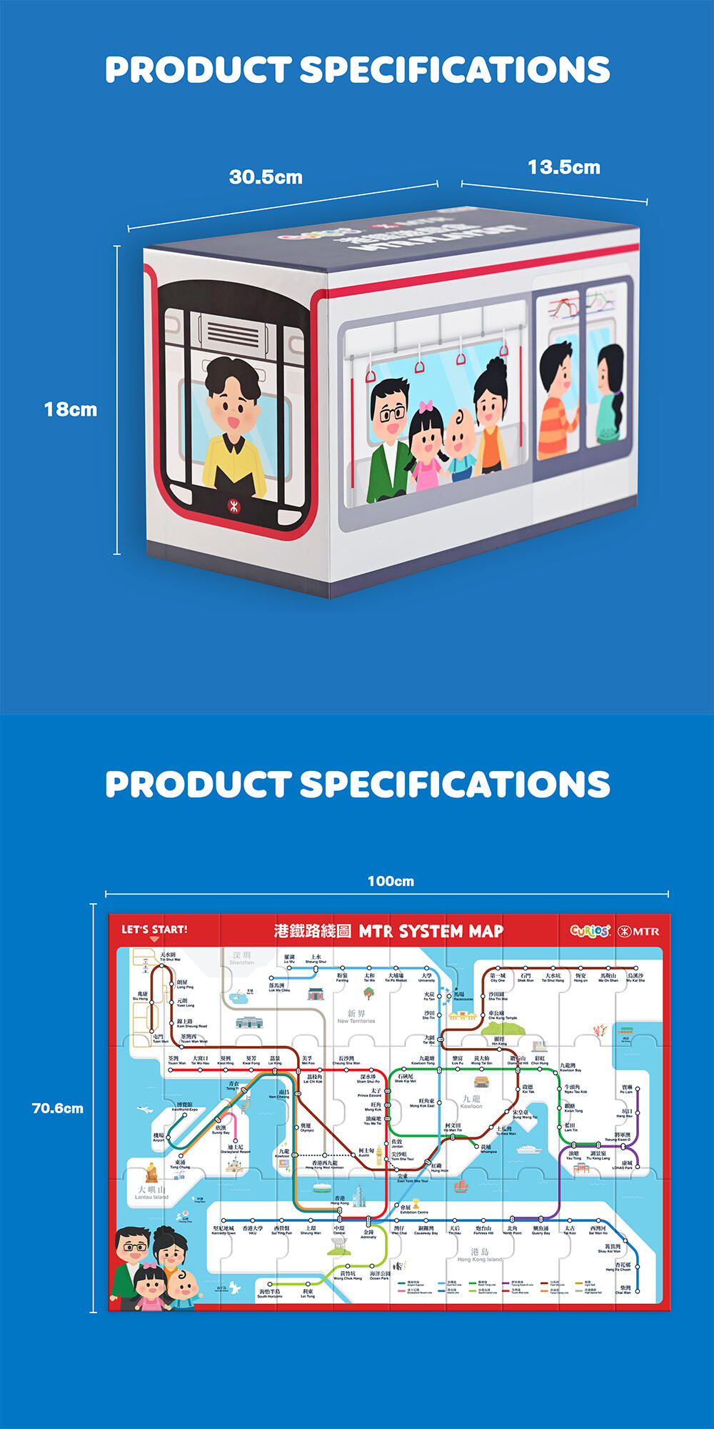 • Puzzle Play: The big MTR System Map Puzzle has 30 pieces puzzle to play with. Each MTR station can be matched with small Matching Card. Players can role-play with MTR Train Cards to navigate on the Puzzle, or move around according to Game Card activities.