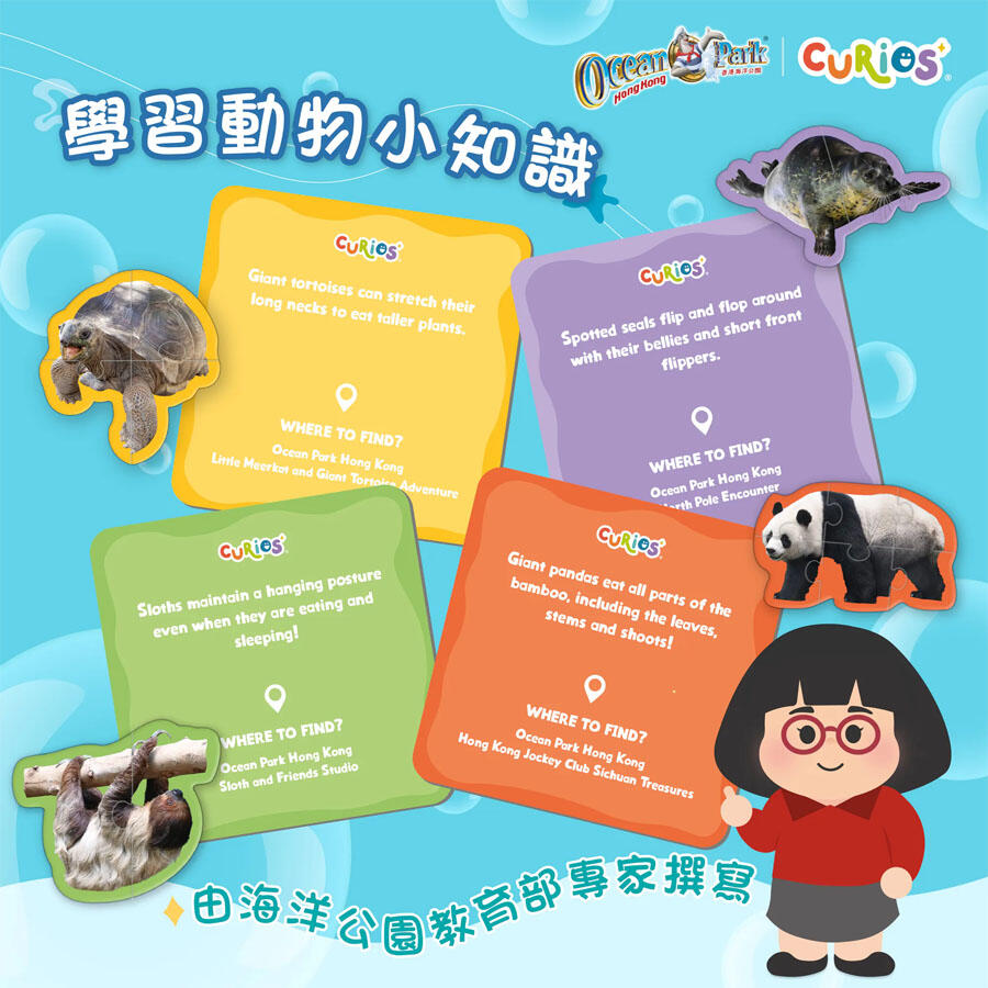 The front side uses real animal images, following Montessori principles, and includes Curios' exclusive baseboard design to guide little hands in precise matching. The back side features fun animal facts written by Ocean Park’s education experts, blending play with knowledge. It even marks the animals’ locations in the park, encouraging kids to visit and spot their furry friends in real life for added interactive fun!