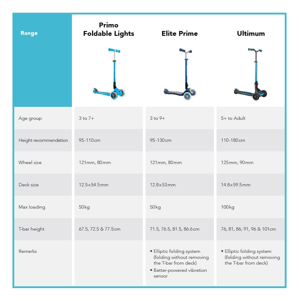 Globber’s Primo Foldable Lights is an award-winning 3-wheel foldable scooter for kids aged 3-7+ (height recommend for 95-110cm) with an easy-to-use and safe, patented folding system makes it easy and safe for kids to play.