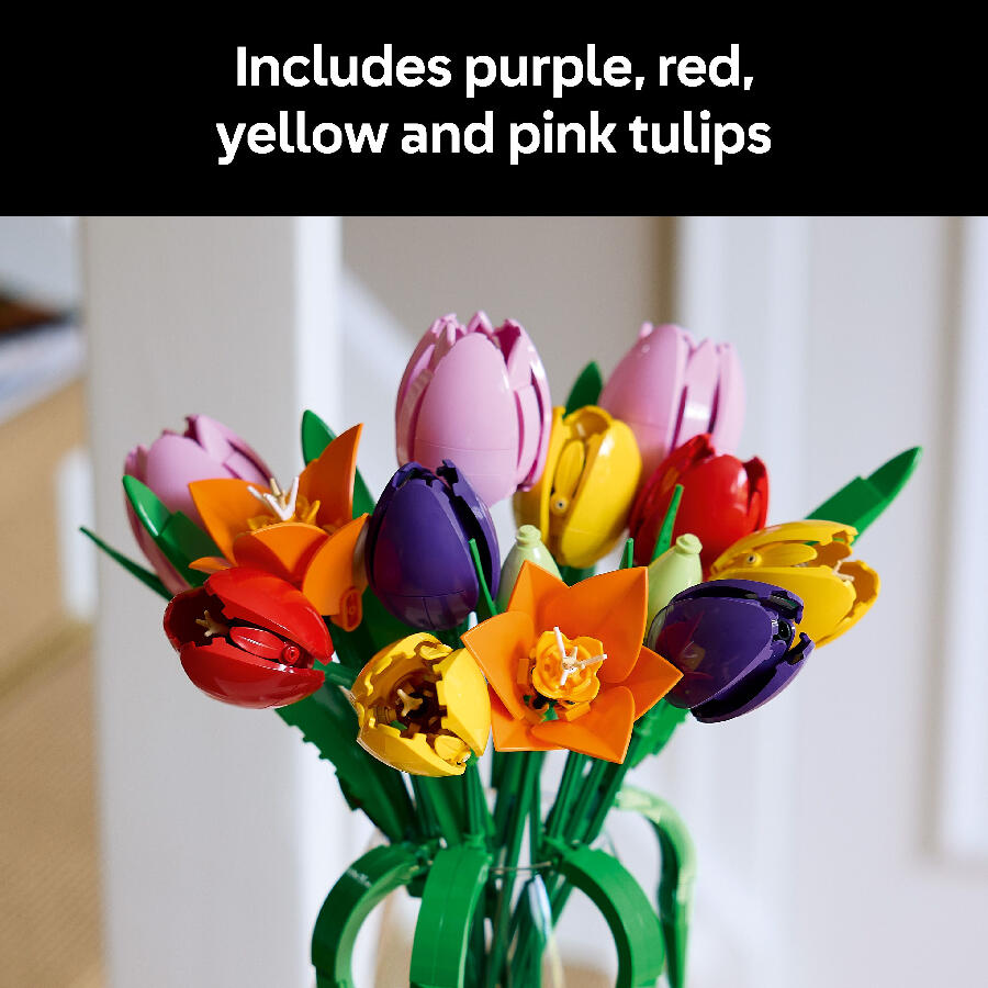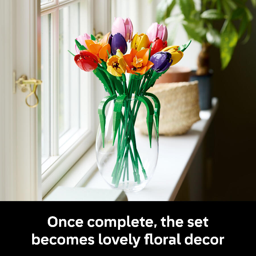 Creativity flourishes with the LEGO Botanicals Tulip Bouquet, a building kit for adults that becomes gorgeous everlasting flower decor.