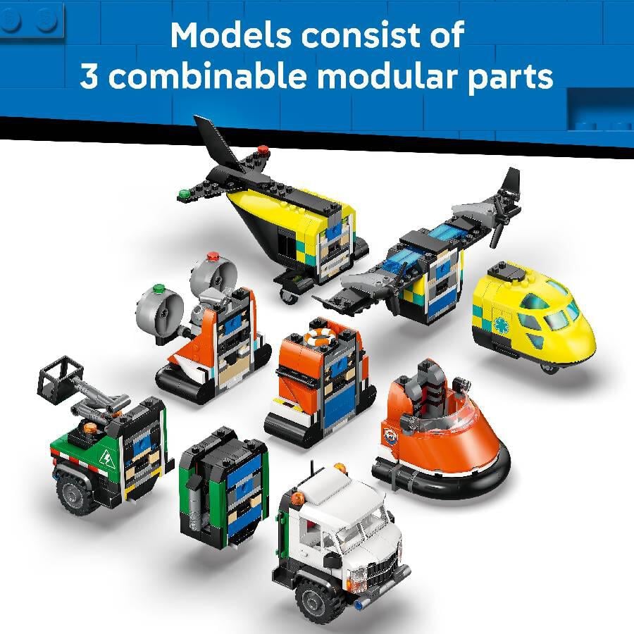 Mix, match and rescue! The LEGO City Airplane, Truck & Hovercraft Remix hero toy allows kids to combine 3 iconic vehicles for epic custom creations.