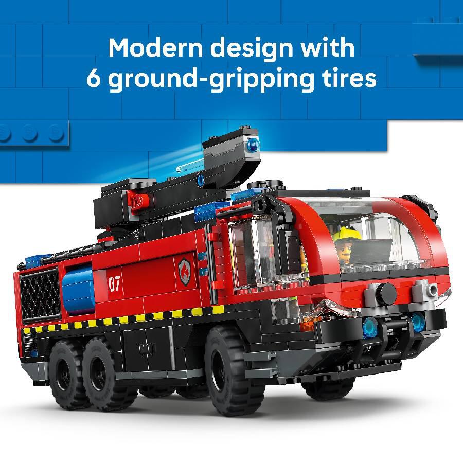 Equip your young hero for hours of epic rescue play with the LEGO City Airport Fire Truck toy vehicle set, including 4 minifigures and accessories.
