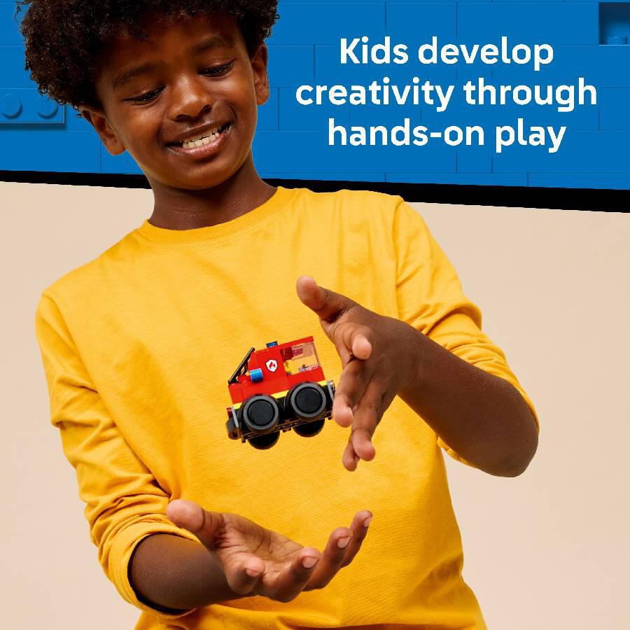 - EASY TO BUILD TOY VEHICLE – This mini building kit includes everything young builders need to create their very own toy fire truck and LEGO City Rides junior minifigure. .