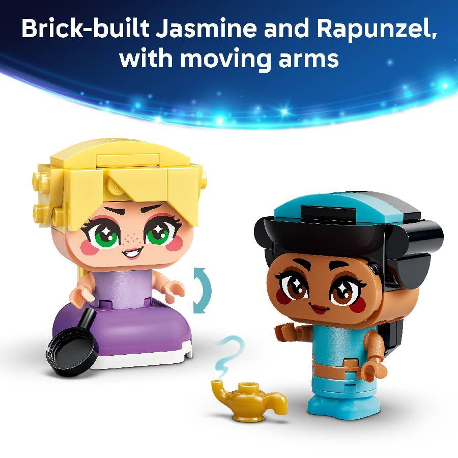 Delight any Disney Princess fan with a building toy set featuring 2 LEGO ǀ Disney characters, Jasmine and Rapunzel, and 2 accessories for play and display.