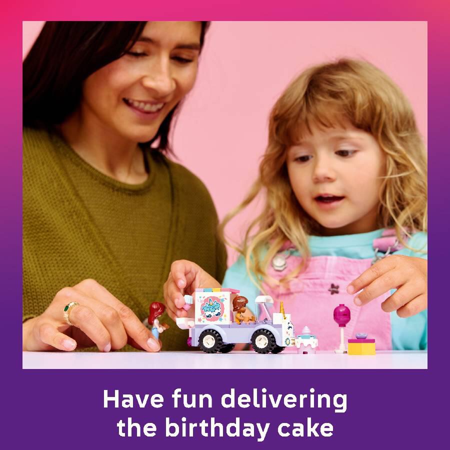 - BIRTHDAY TOYS – LEGO Friends Unicorn Cake Delivery Car 42675 opens up a world of preschool learning activities such as storytelling with the birthday gift, cake toy, balloon and donut accessories.
