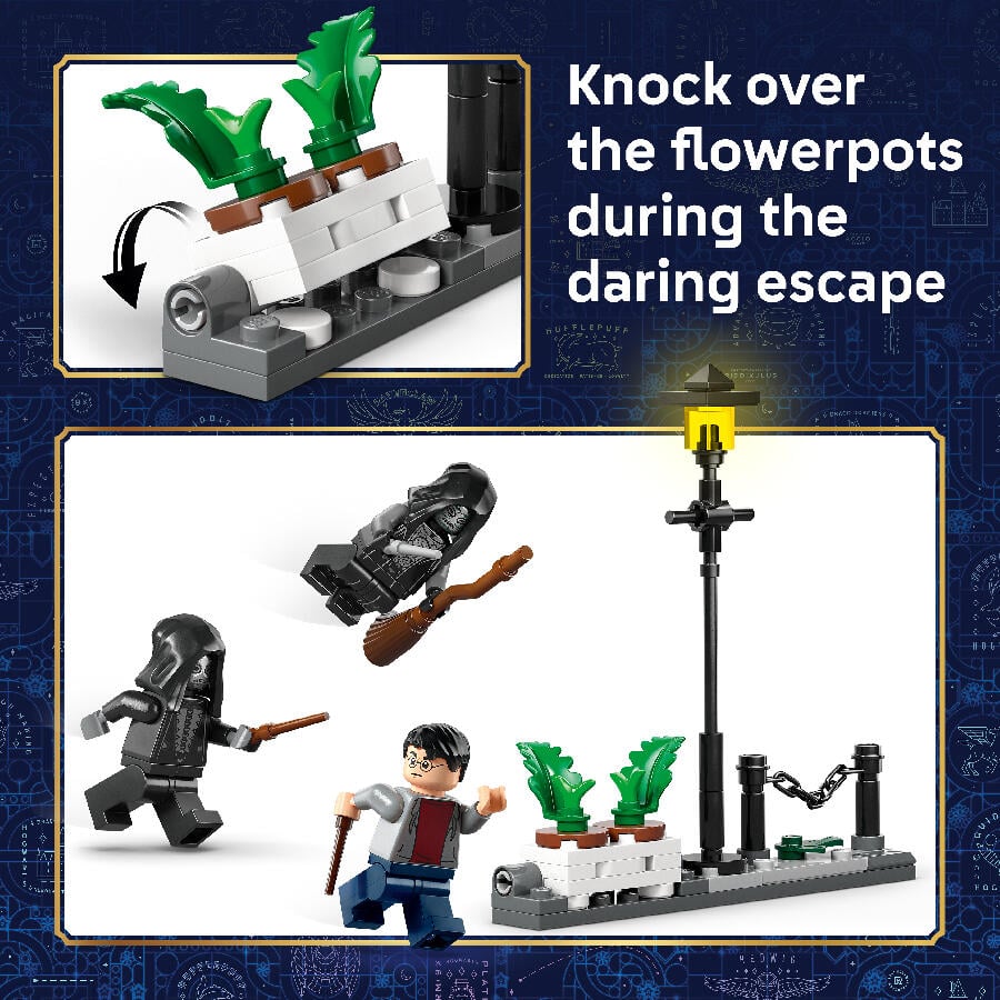- PRIVET DRIVE STREET SCENE – Create a mini build street scene, featuring a lamppost and 2 flowerpots in a planter that can be flipped over mid-action.