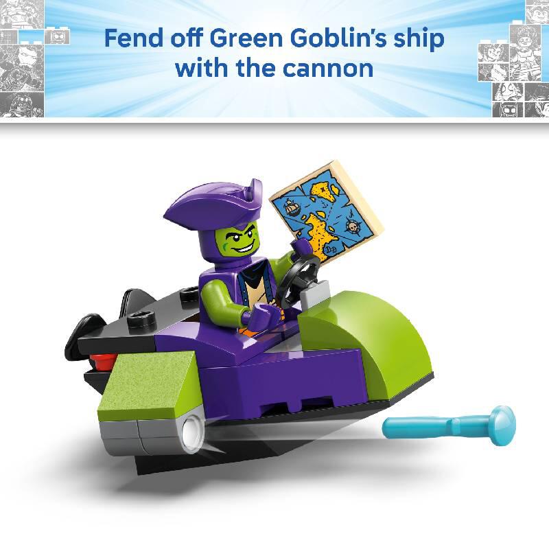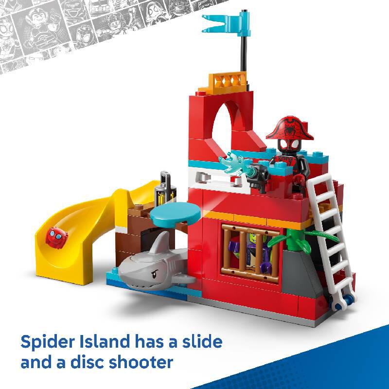 - 4 MINIFIGURES – Join Spidey, Ghost-Spider, Miles "Spin" Morales, Green Goblin and Trace-E for fun on a pirate ship, Spider Island and 2 other small boats in this action-packed building toy.