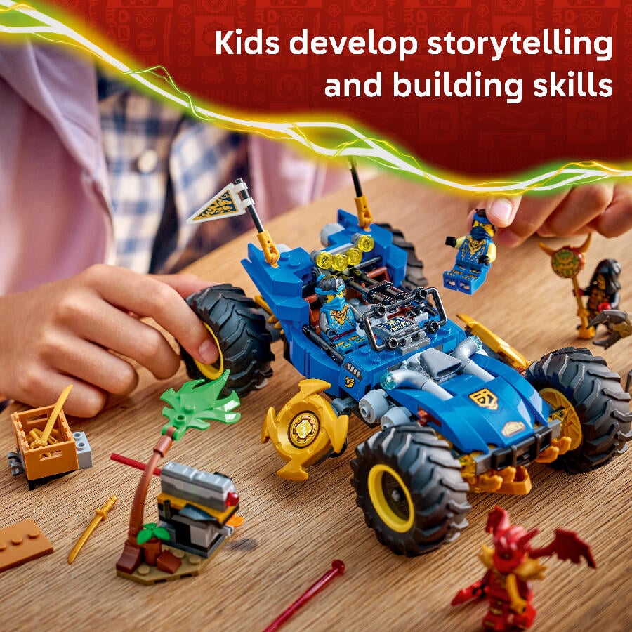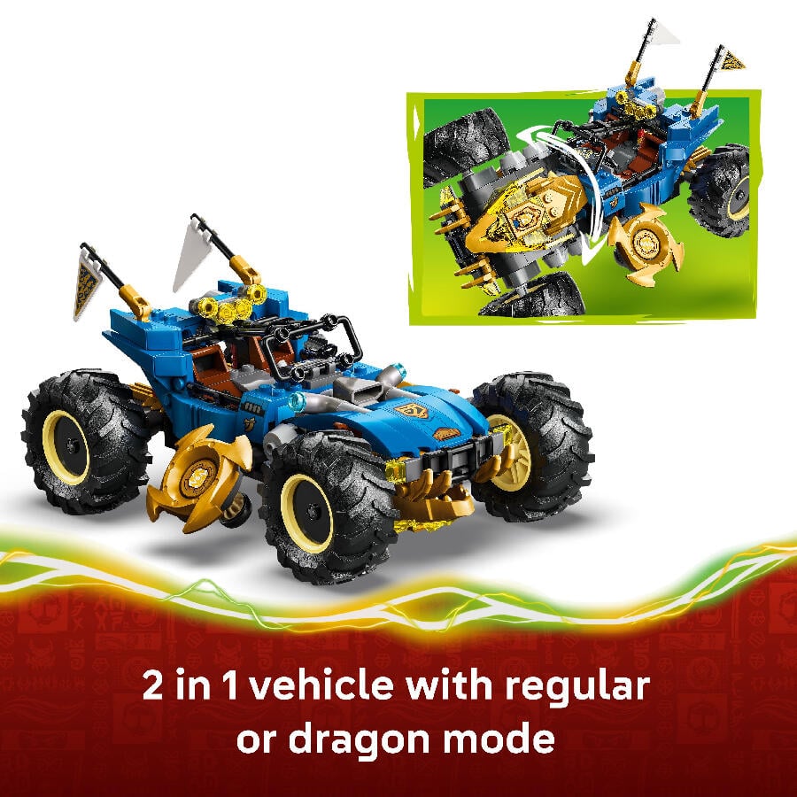 - CAR RACING TOY FOR KIDS – Jay’s Transforming Car (71856) building toy lets boys and girls ages 8 and up play out fast-paced action from season 4 of the NINJAGO Dragons Rising TV show.