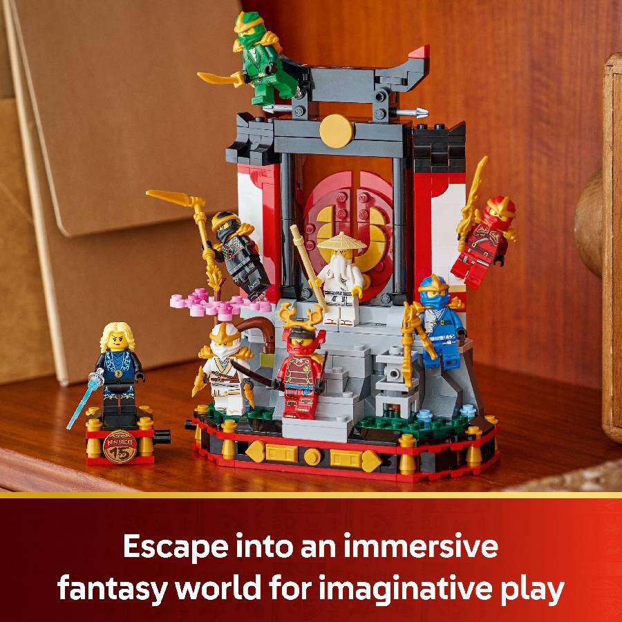 NINJAGO fans can celebrate the 15th anniversary of the LEGO NINJAGO TV show with this ninja monastery playable display stand with 8 minifigures.
