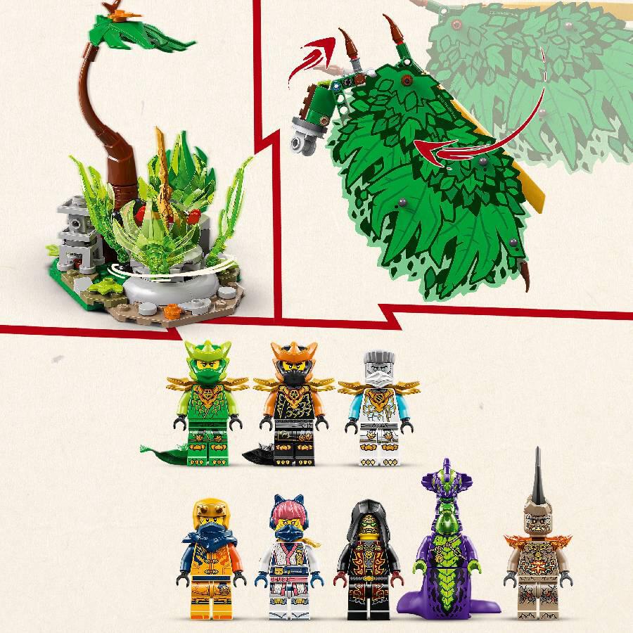 Recreate action from season 4 of the NINJAGO Dragons Rising TV show with the LEGO NINJAGO The Dragon of Life playset with 8 minifigures.