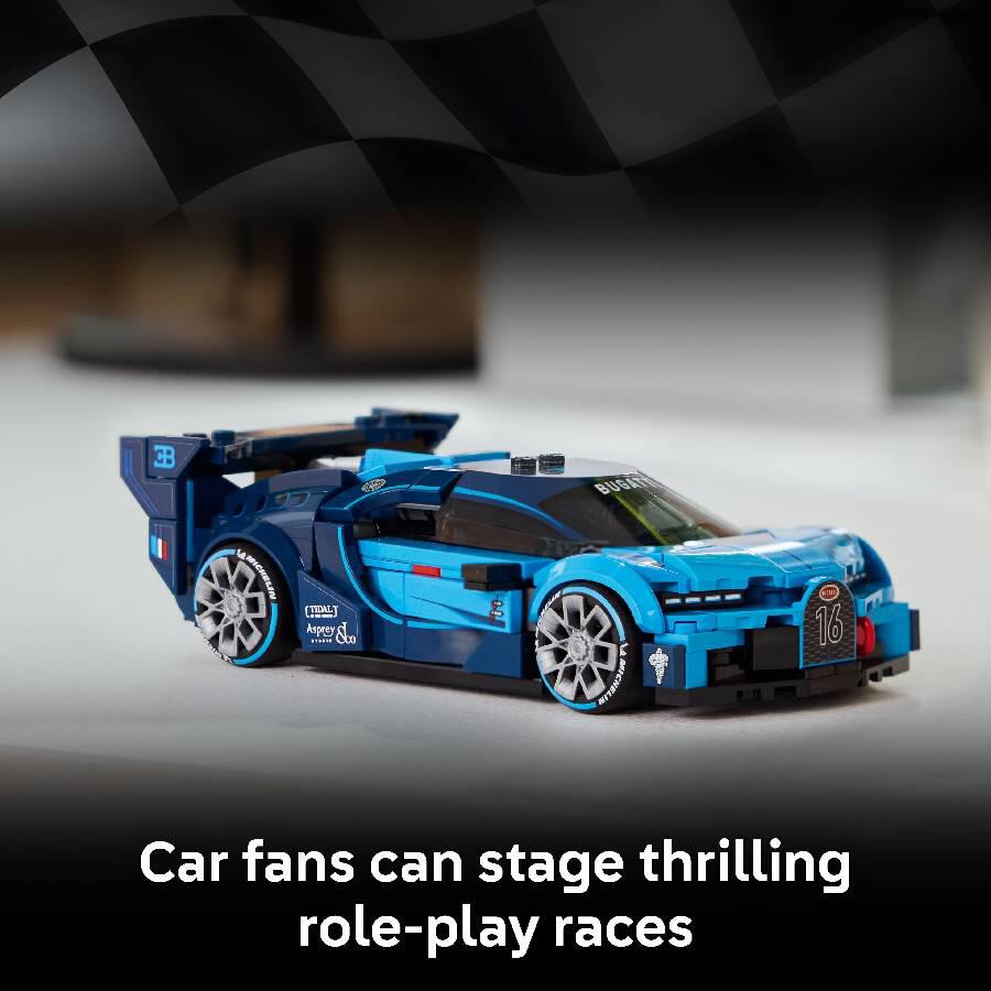 - BUGATTI CAR TOY – LEGO Speed Champions Bugatti Vision Gran Turismo Hyper Sports Car model kit (77253) for boys, girls and car fans ages 9 and up to build and display.