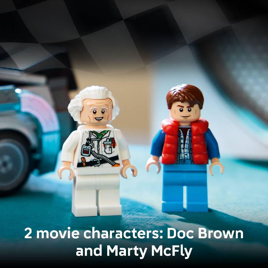 - 2 MINIFIGURES – This Back to the Future toy comes with 2 characters from the movie franchise: Doc Brown and Marty McFly to place inside the cockpit and enjoy role play.