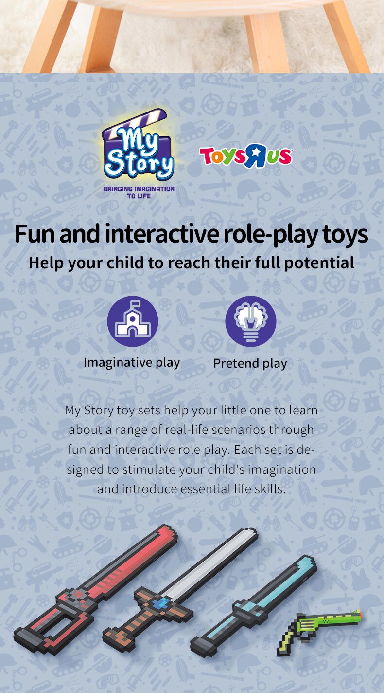 With this toy revolver, you little one will dive into the pixelated world protect their build up creations. With differnt sound and light effects, taking down foes who attack their town has never been easier. How will this pixelated story end?