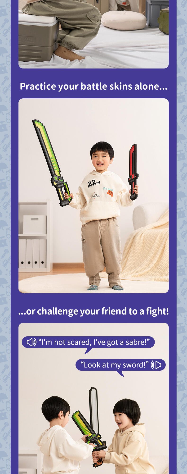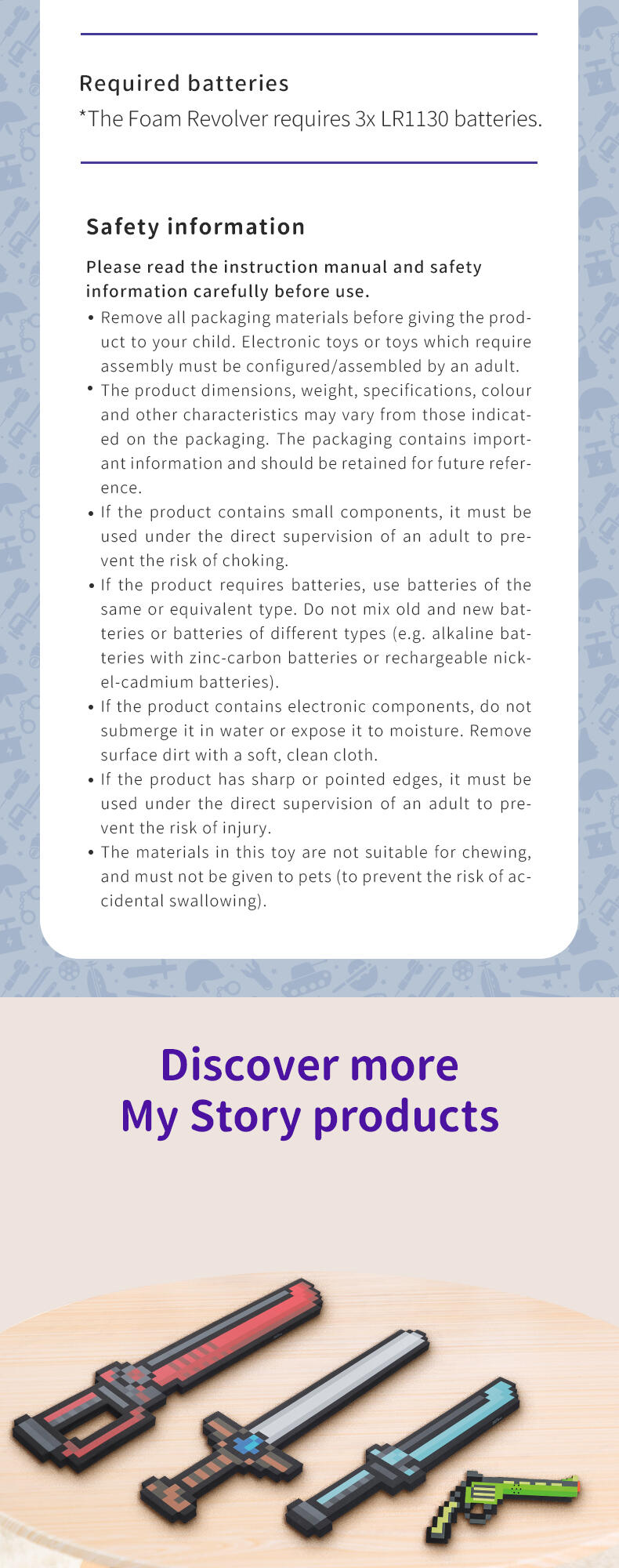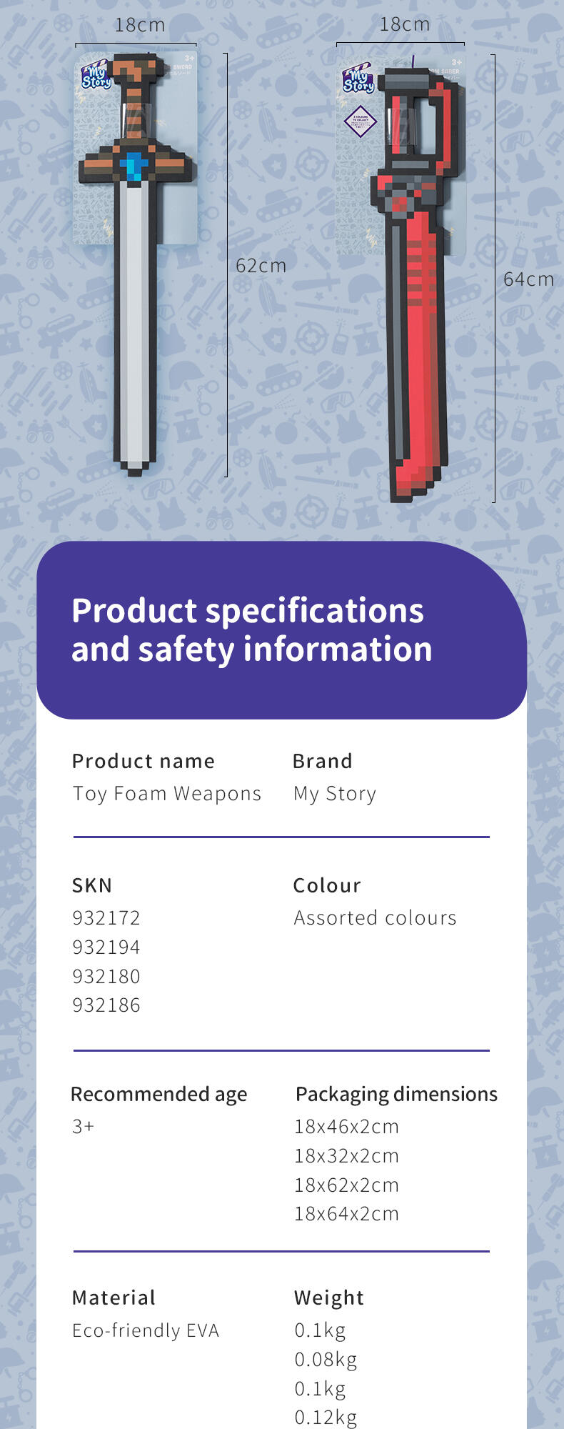 Dive into the pixelated world where your little one can protect their built up creations. Made out of high quality safe EVA foam, this toy is safe for playing. The perfect gift for building block gamers and their pixel adventures! How will this pixelated story end?