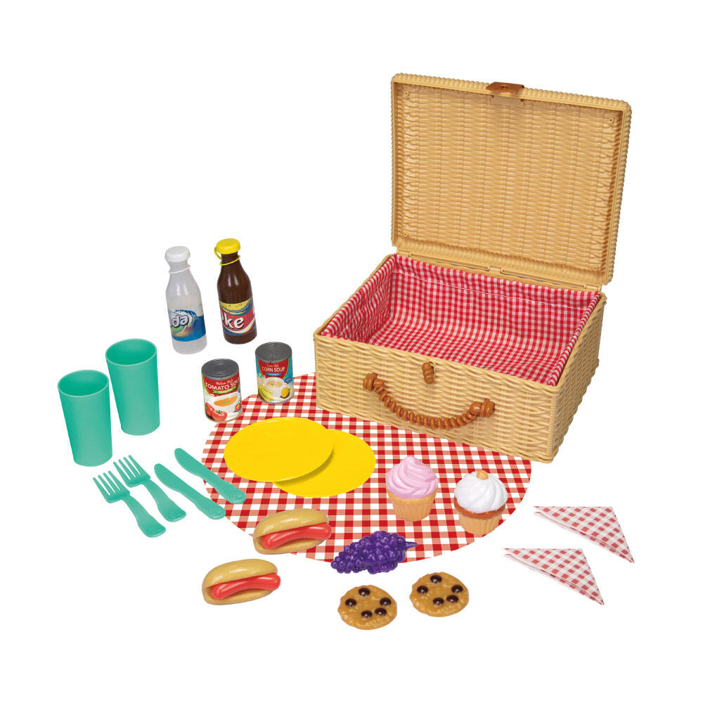 • 25 essential picnic accessories: play food, utensil & cutlery