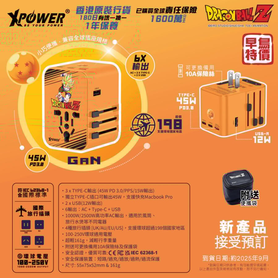 (Special Order) XPower x Dragon Ball Z TA45B 45W 6-output PD3.0/PPStravel adapter(Goku)
