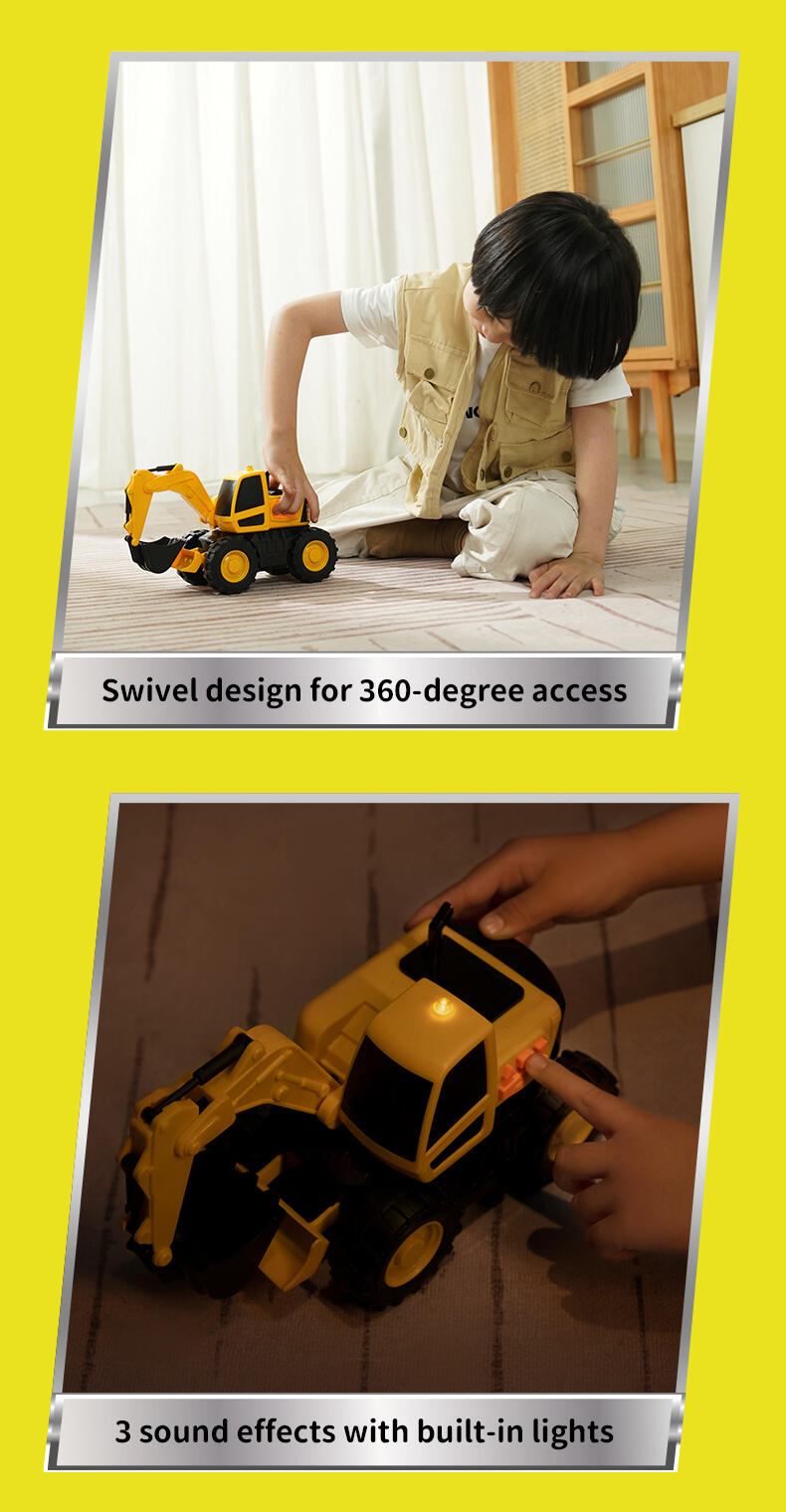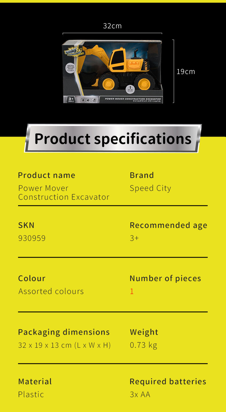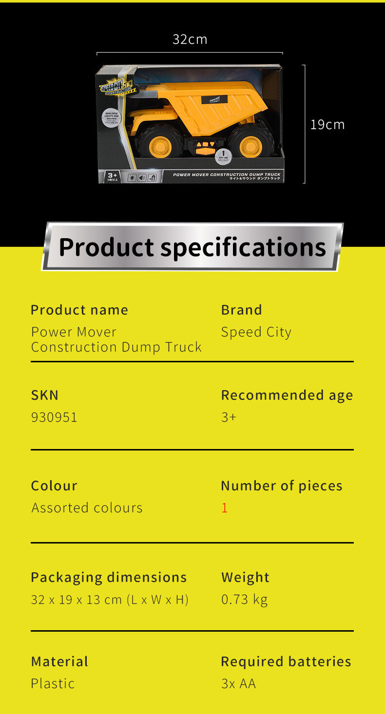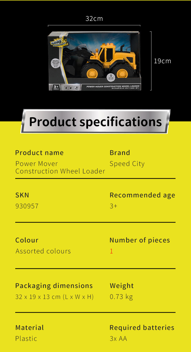 The realistic functions of the Power Mover Wheel Loader will make little construction workers feel like they’re running their very own building site. The motorised bucket arm can be raised and lowered, and the truck drives forward and back at the push of a button. Realistic lights and sounds create an authentic experience that encourages kids to explore the world around them through play and storytelling. Perfectly proportioned for ‘push-along’ play, this vehicle will help develop cognitive, creative and essential motor skills.