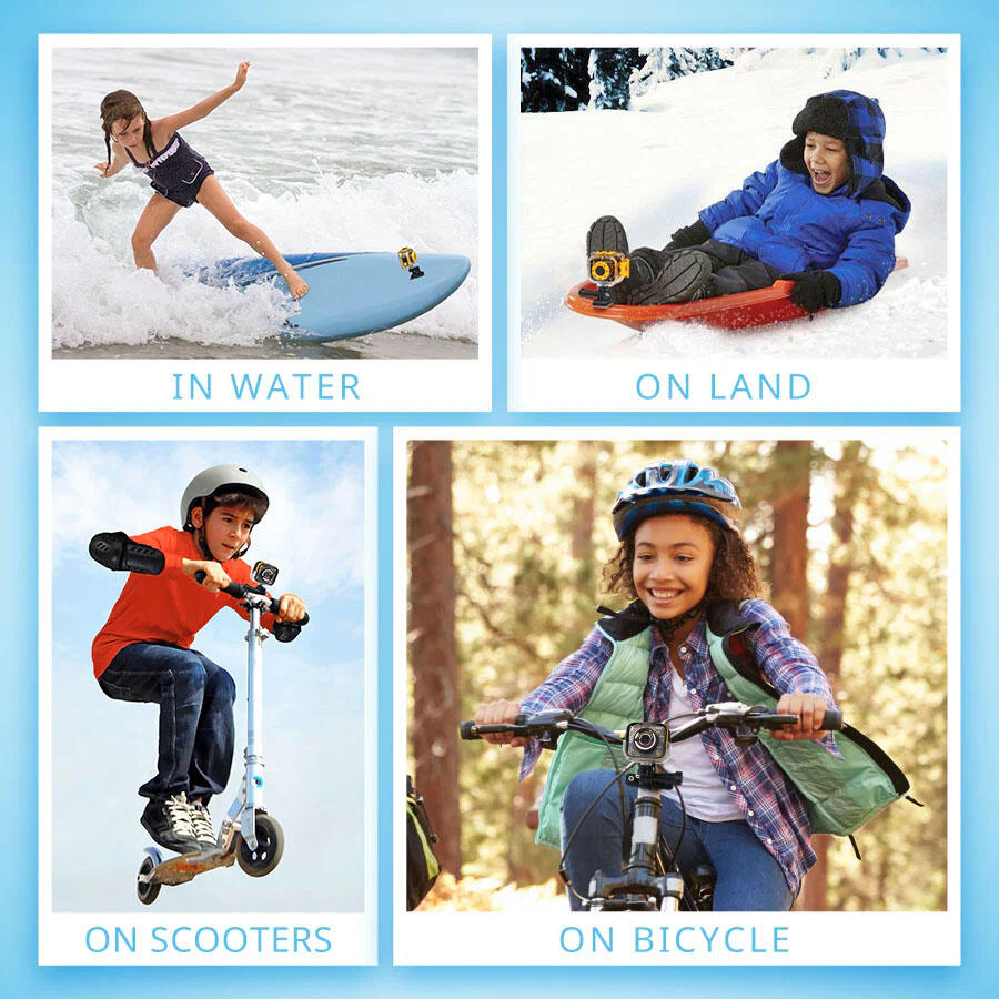 - Includes mounts to attach the camera to bicycles, scooters, skateboards and more