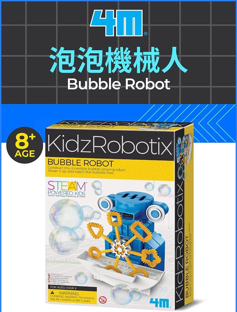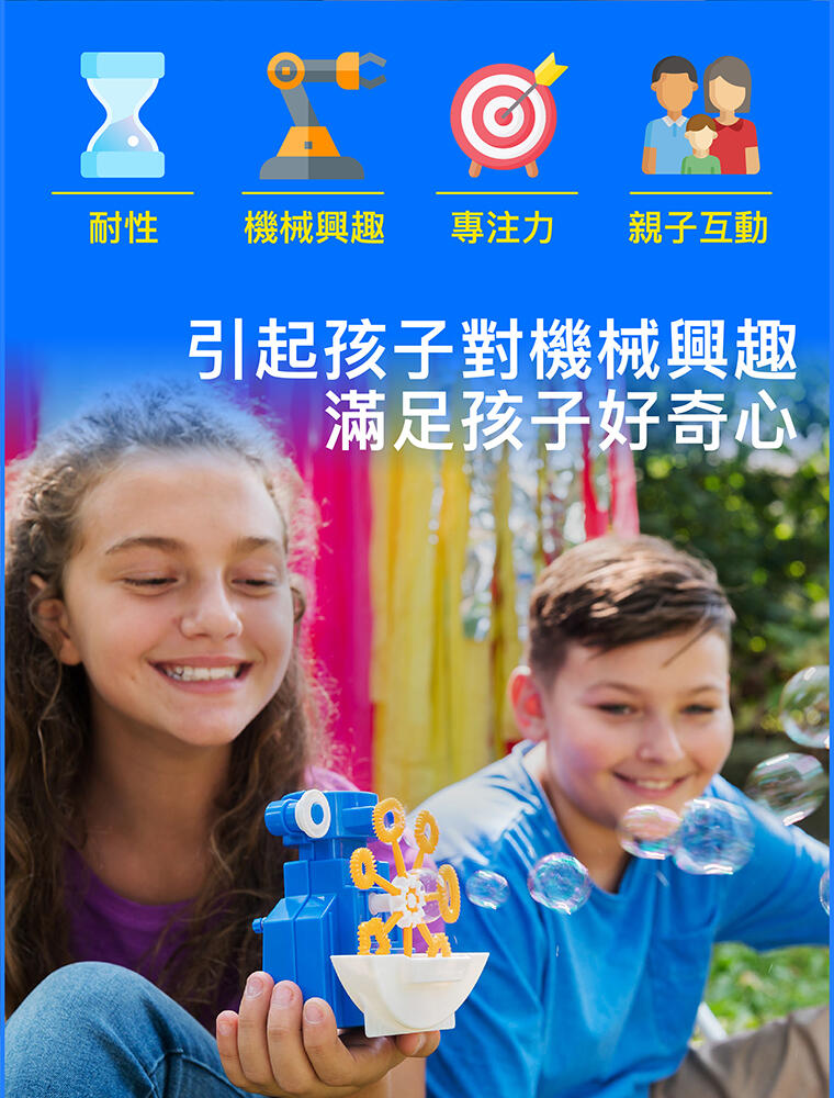 建造這部令人超級泡泡機器人!接通電源,觀察氣泡流動。