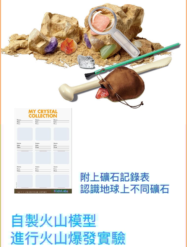了解地球的自然力量,體驗地質科學的無限樂趣。建造一座火山,開採礦物晶體並收藏自己培養的獨特水晶。