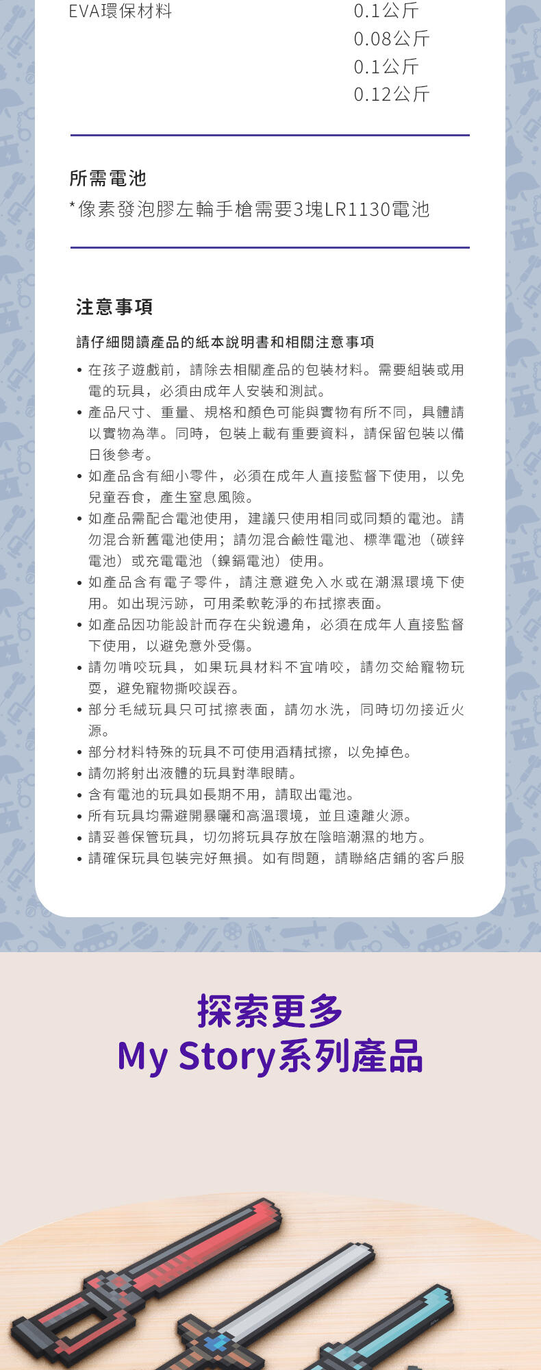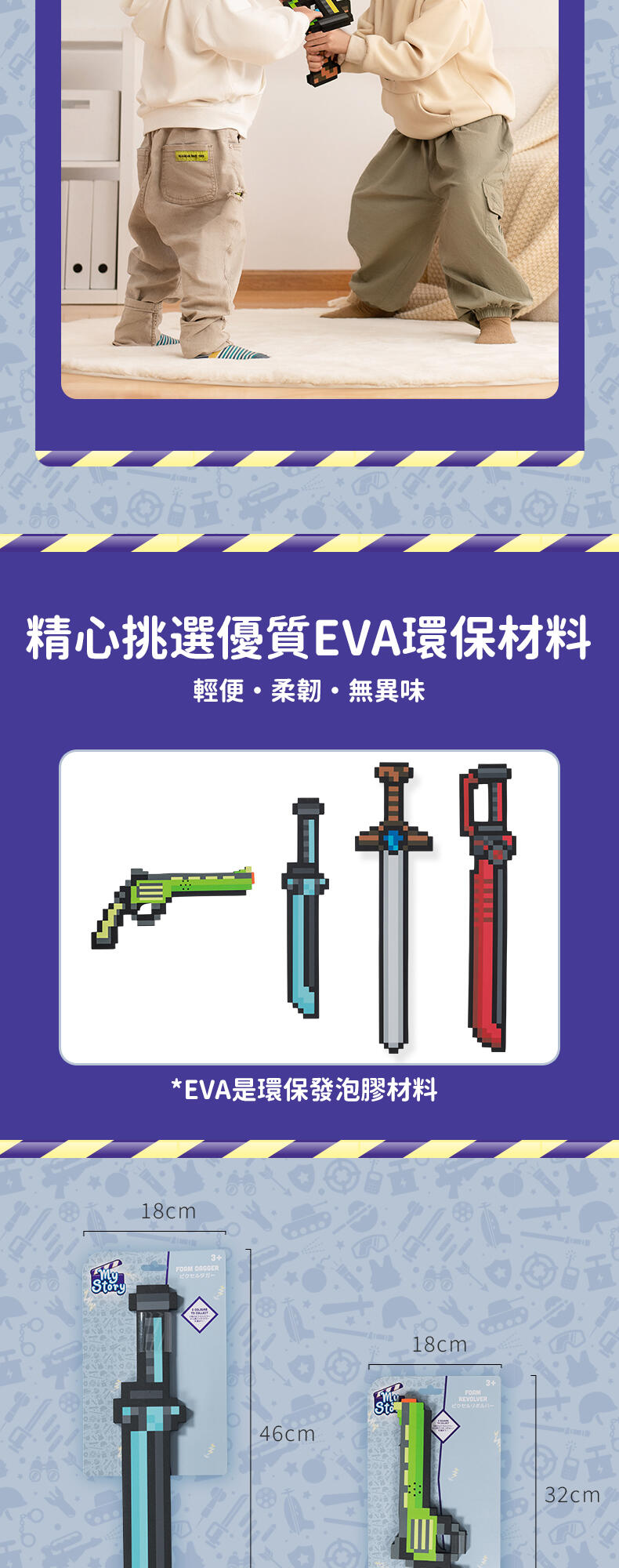 讓孩子投入像素遊戲世界,保護自己創造的小天地。本產品由優質安全的EVA發泡膠製造,確保不會產生危險。這套玩具適合喜歡建設類遊戲的孩子,可讓他們構思出像素世界的歷險故事,並決定旅程的結局。
