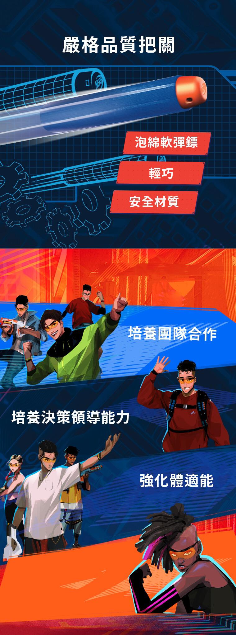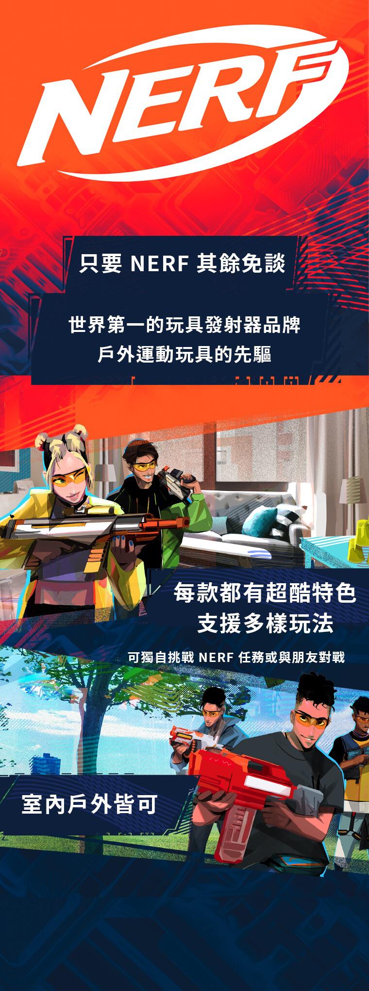 - 史上最大的 Nerf 超級系列彈鏢:透過發射出史上最大 Nerf 超級系列彈鏢的 Nerf 超級系列加大型發射器,提升 Nerf 大戰的規模!