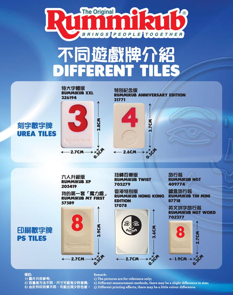 在Rummikub Twist裡,除了你所熟悉的可愛百搭牌,還有另外3種你未曾看過的百搭牌。現在Rummikub開始會有4種百搭(一般百搭牌,雙人百搭牌,變色百搭牌,鏡射百搭牌),4種不同臉色的百搭牌。 Rummikub Twist除了新加入3種百搭牌,所有牌和牌架都重新設計成略為彎曲的圓弧狀。彎曲的牌使得拉密牌容易堆成牌堆,並且容易令牌塊重組。