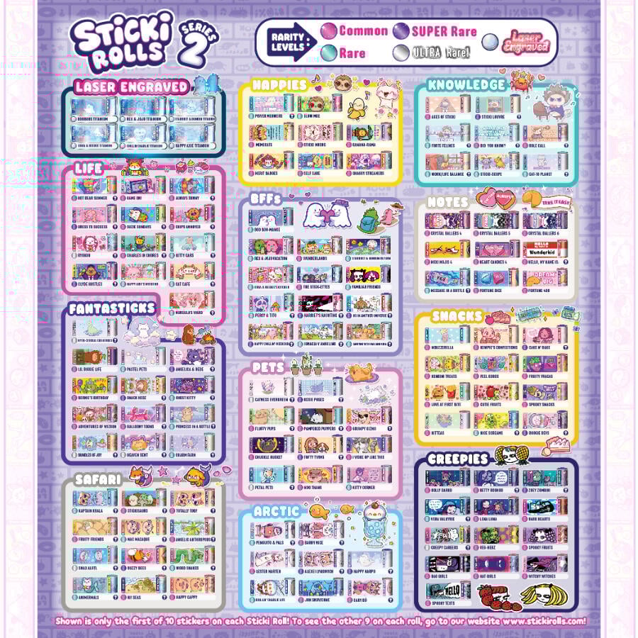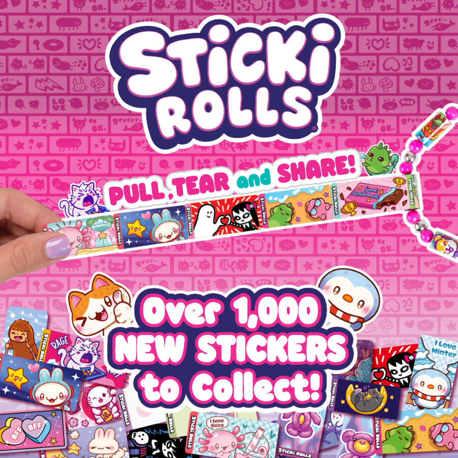 Sticki Rolls Sticki Station 是一個新系列可穿戴、可共享的貼紙手鍊,您可以剝離、撕下並與朋友分享! Sticki Station 是終極 DIY 包,可自訂您自己的 Sticki Rolls 手鍊和項鍊!