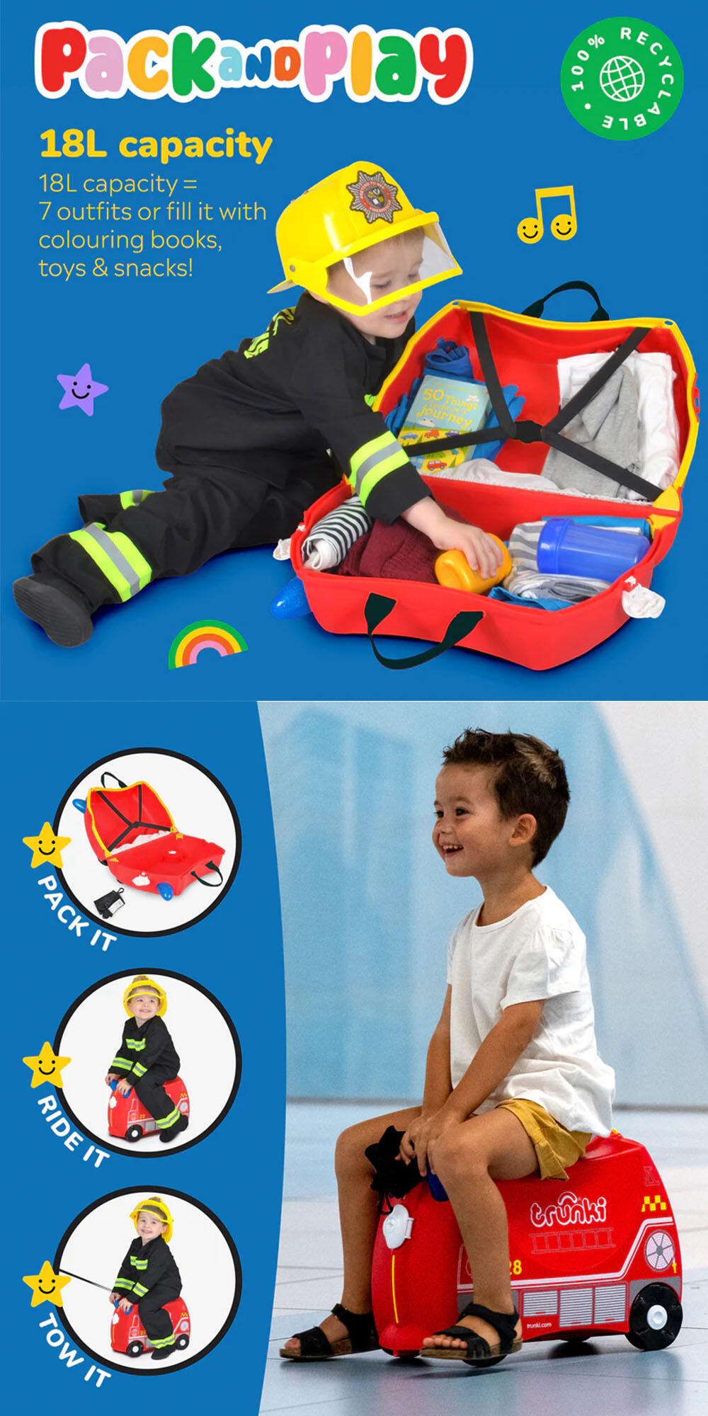 Trunki 騎乘式行李箱非常適合孩子於旅途中使用。最初設計為用作手提行李,隨著時間的推移,我們意識到它們也是在家中玩耍、過夜和居家度假的完美伴侶。我們的 Trunki 行李箱在英國採用輕質、可擦拭乾淨的塑料製成,經久耐用。