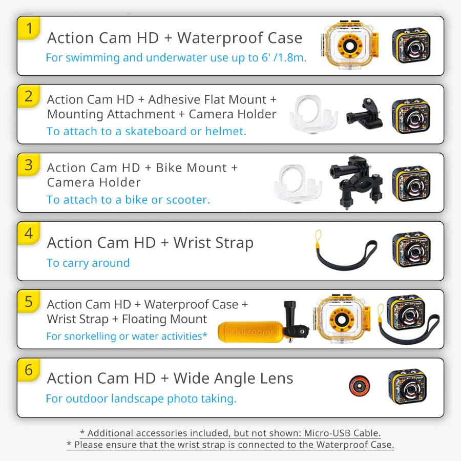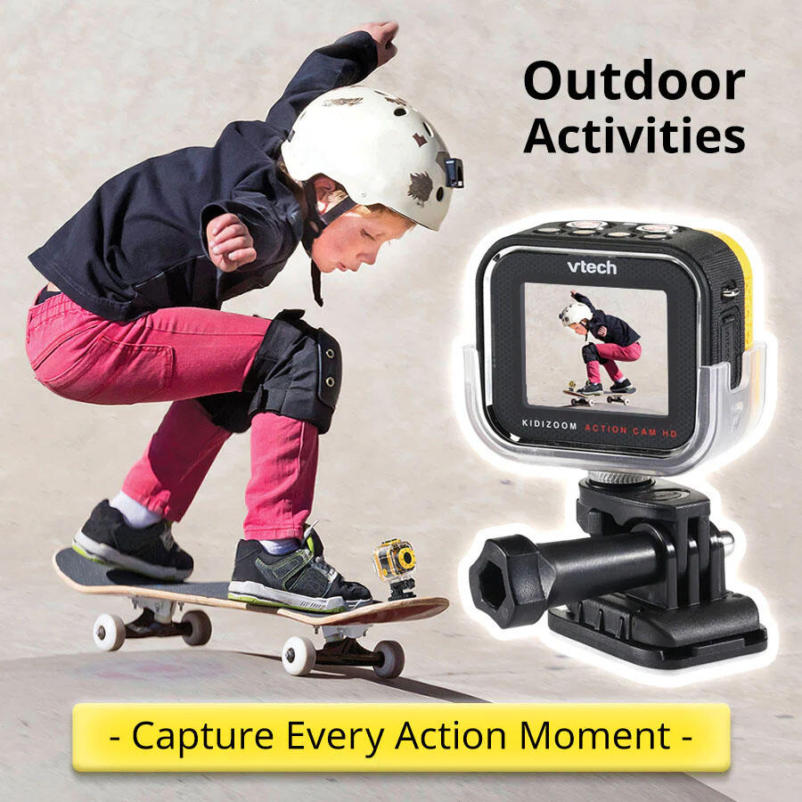 此高清運動相機配備廣角鏡頭,可拍攝具專業感的相片及影片;隨附防水保護殼及浮動支架,讓小朋友可於水中安心拍攝。另附多款支架,方便將相機安裝於單車等物品上,記錄各種戶外活動時刻。
