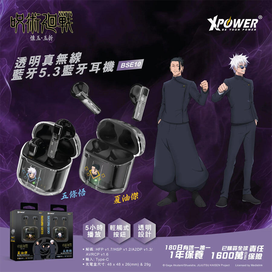 Xpower 咒術回戰 BSE10透明真無線藍牙5.3藍牙耳機 五條悟