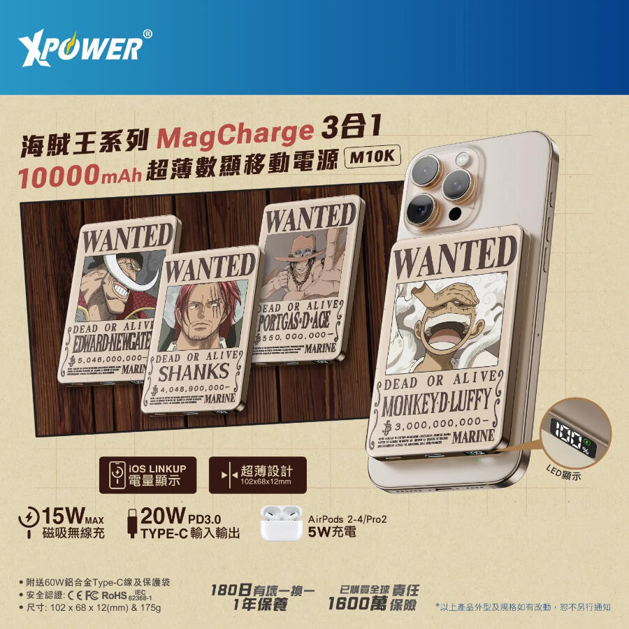 XPower 海賊王3合1 10000mAh超薄數顯移動電源(M10K) - 白胡子