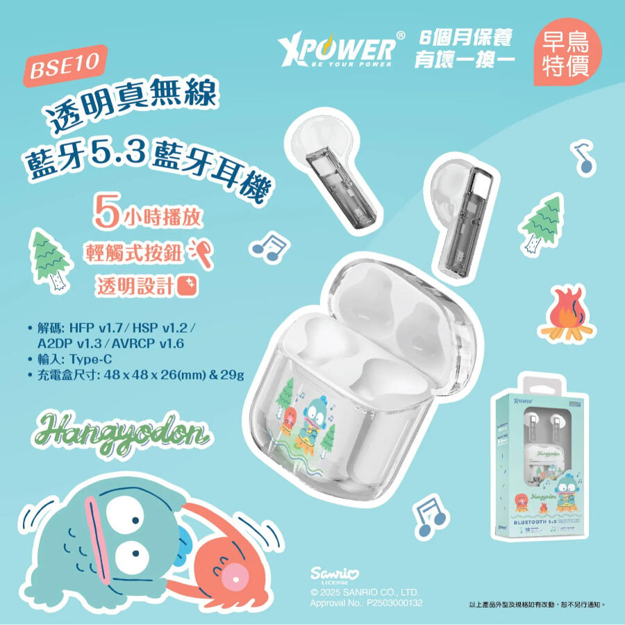 XPower Sanrio 水怪 BSE10 透明真無線藍牙5.3藍牙耳機