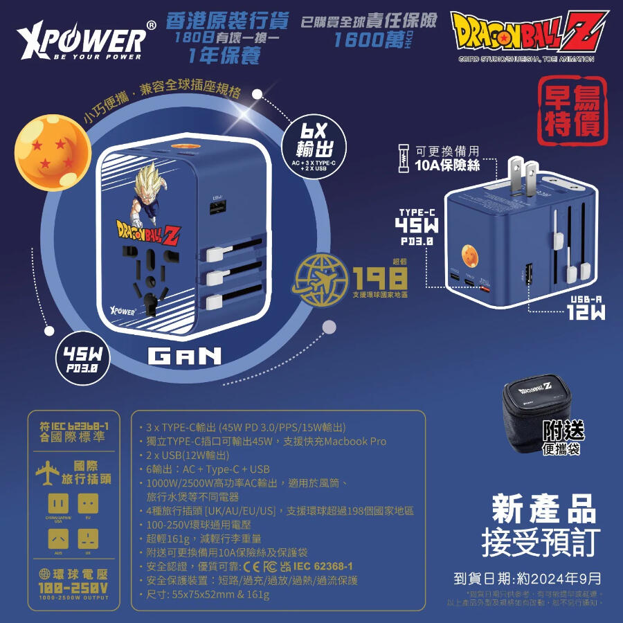 XPower x 龍珠Z TA45B 45W 6輸出 PD3.0/PPS快充旅行充電器 (比達)